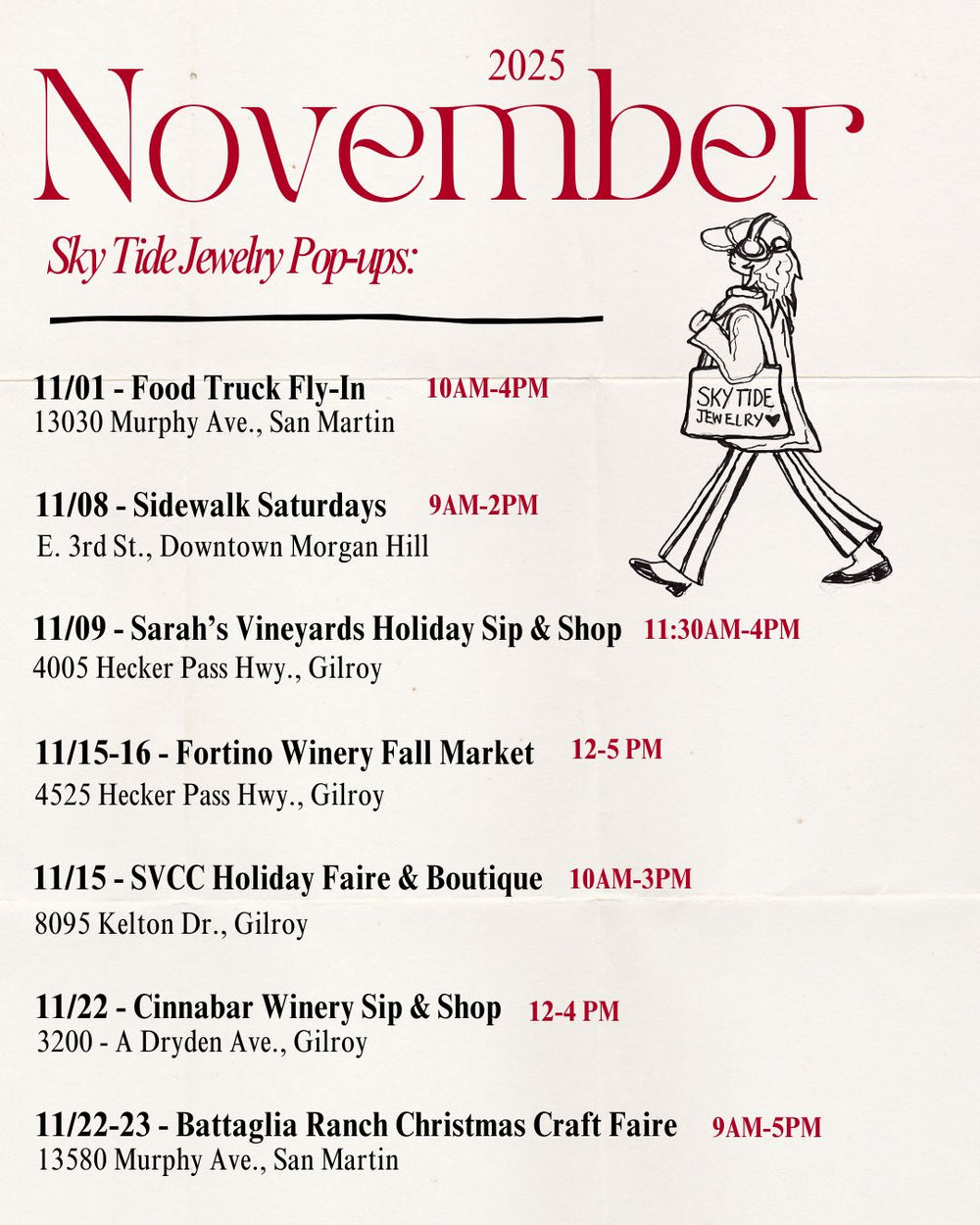 There are unreleased designs and discounts at every pop-up out of appreciation for you coming out! Thank you :)